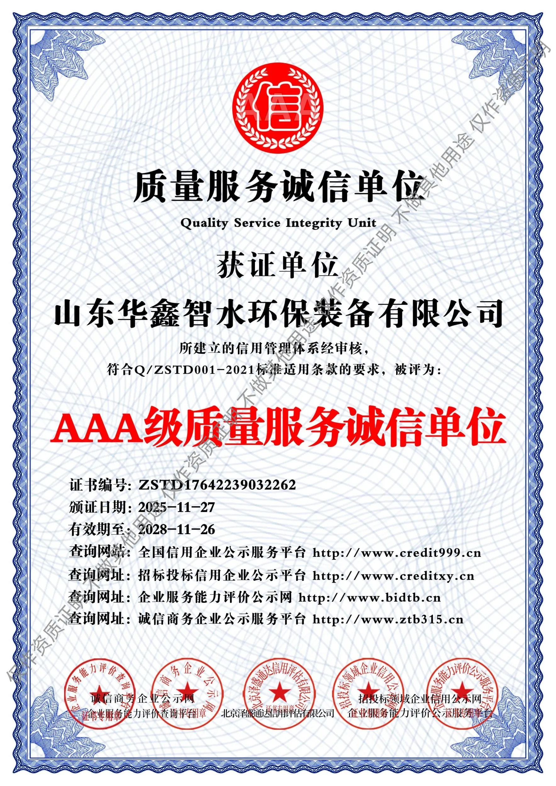 AAA级质量服务诚信单位
